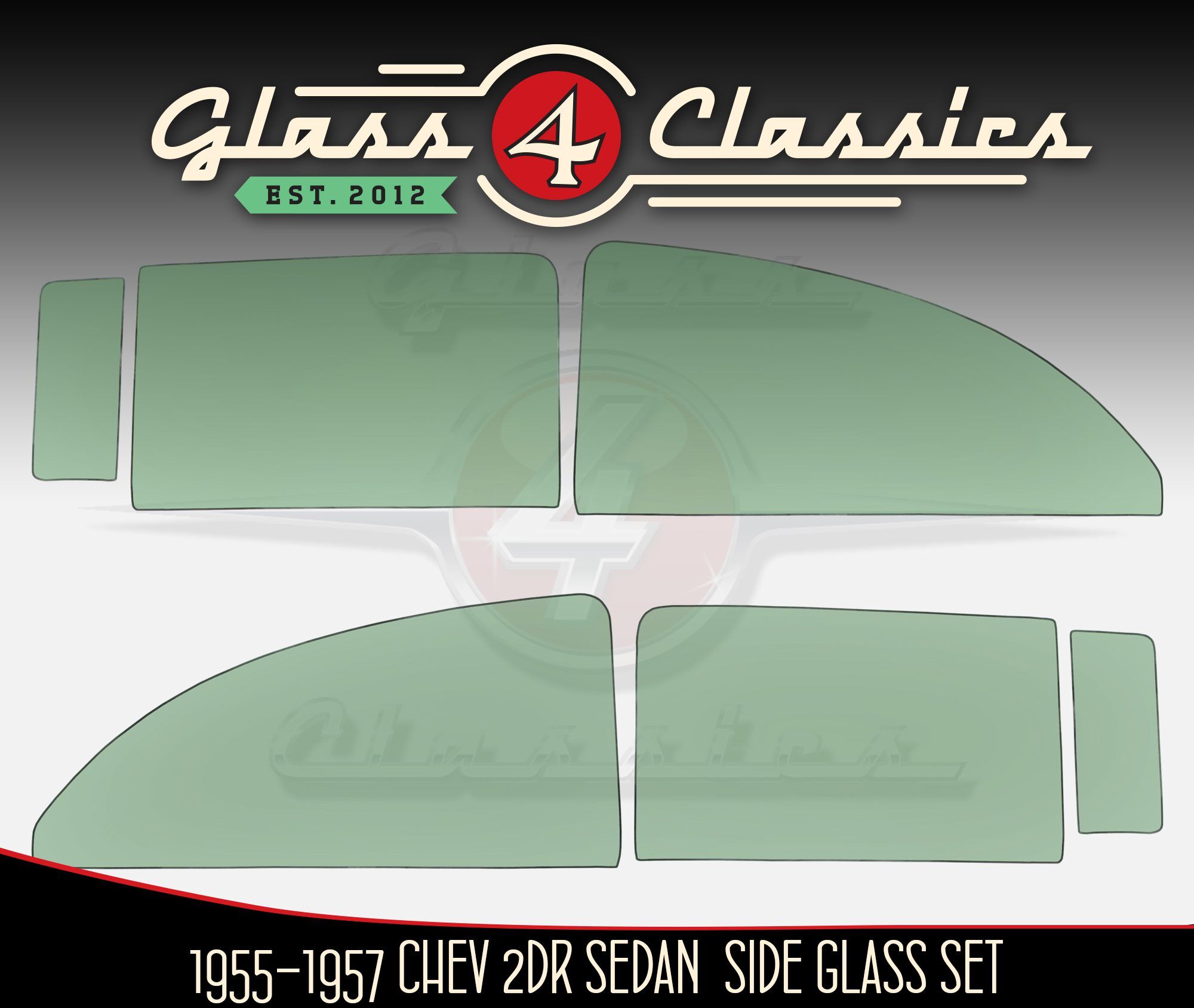 55-57 Chevrolet Bel Air 210 150 2Dr Sedan | Side Window Set (6 x Pieces) | New Glass